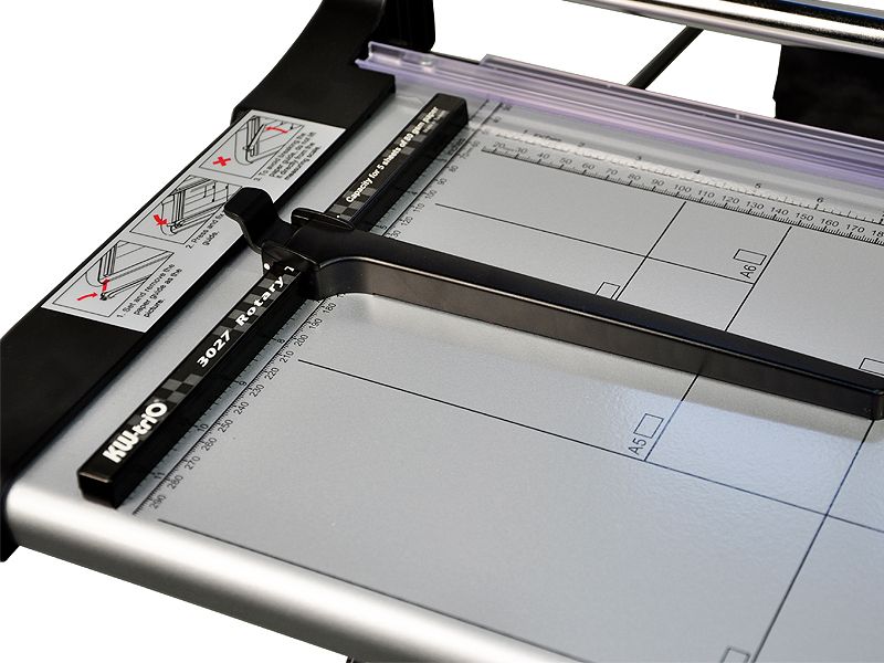 Kvalitní kotoučová řezačka s pevnou kovovou základnou a řeznou hlavou umístěnou na kovové tyči. Základna je vybavena natištěnými měřítky a posuvnou zarážkou souběžnou s přímkou řezu. Rotační nůž z nerezové tvrzené oceli. K dispozici je náhradní řezné kolečko nebo celá řezná hlava.Více o značce KW-triODotaz na produkt
