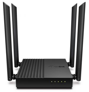 TP-Link Archer C64Dvoupásmový bezdrátový Wi-Fi router pracující na frekvencích 2,4 a 5 GHz standardu 802.11a/b/g/n/ac. Čtyři externí antény poskytují stabilní bezdrátové připojení a optimální pokrytí. V pásmu 2,4 GHz dosahuje přenosových rychlostí až 400 Mbit/s a v pásmu 5 GHz až 867 Mbit/s. Na zadní straně disponuje čtyřmi Gigabitovými RJ-45 LAN porty a jedním Gigabitovým RJ-45 WAN portem.