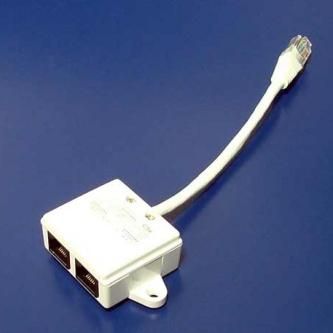 Rozdvojka RJ45, bílá, k upevnění na zeď
