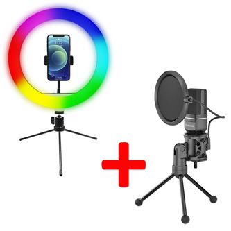 Sada kruhového světla Powerton 10" RGB LED a streamovacího mikrofonu Marvo MIC-03 PROMO PA
