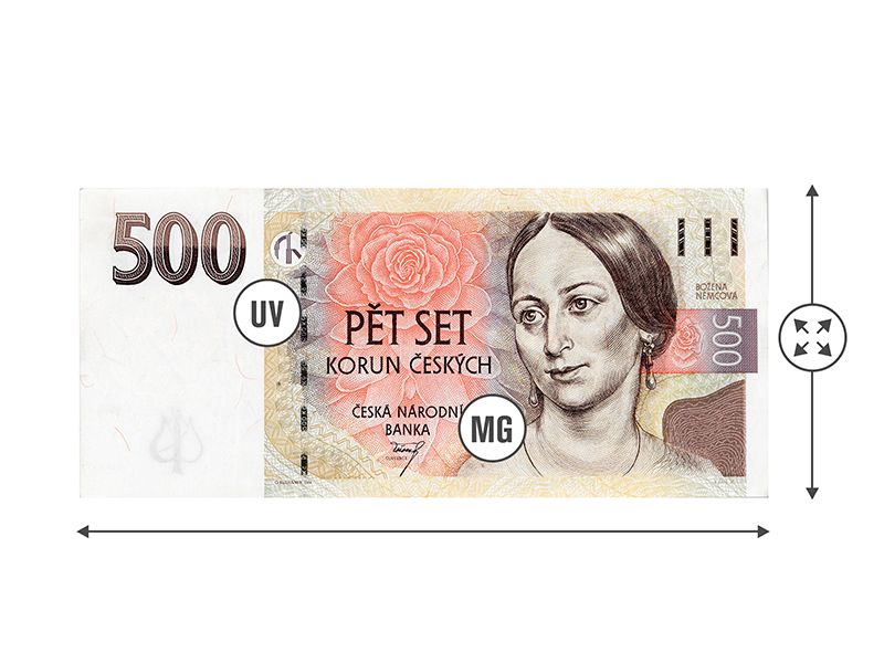 Detekce Automatická , ve velikosti nerozezná rozdíl menší než 5 mm od první bankovnky