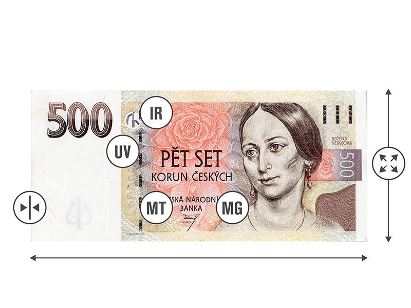 Šestinásobná detekce padělků bankovek GBP: UV, magnetické a kovové prvky, infračervené vlastnosti bankovek, tloušťka a rozměry