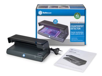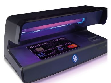UV detektor Safescan černé barvy k ověření pravosti bankovek, kreditních karet, občanských průkazů a dalších úředních dokumentů.- UV detektor k ověření pravosti bankovek, kreditních karet, občanských průkazů a dalších úředních dokumentů