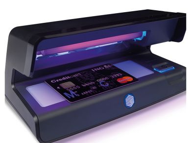Detektor padělků bankovek, kreditních karet a dokumentů, opatřených ochrannými prvky.- Detektor padělků bankovek a kreditních karet