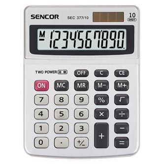 SENCOR SEC 377/10 šedá Kalkulačka stolní desetimístná, duální napájení, kovový štítek