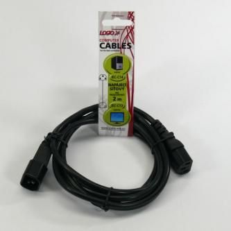 Prodlužovací napájecí síťový kabel - C13 - C14 - 2m, černý, LOGOProdlužovací síťový napájecí kabel. Lze použít pro prodloužení standardního napájecího kabelu s přístrojovou zástrčkou.