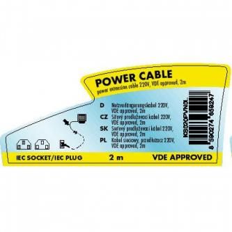 Síťový kabel 230V prodlužovací, C13-C14, 2m, VDE approved, černý, LOGO