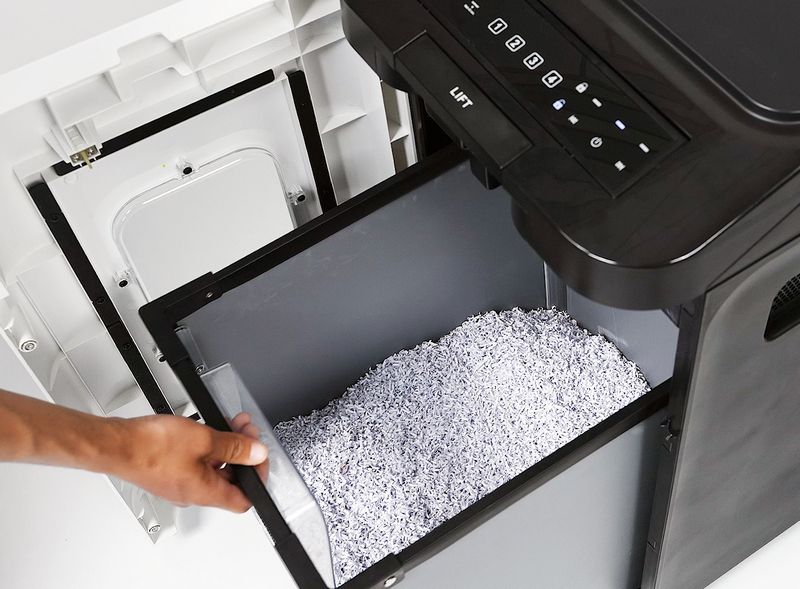 Skartovací stroj AT-350AF s automatickým podavačem , 2x12 mm, P5, koš 53 litrů