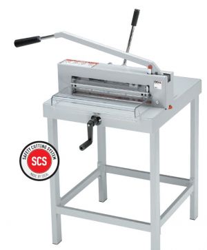 MECHANICKÁ STOHOVÁ ŘEZAČKA S DÉLKOU ŘEZU 430 MMSCS (Safety Cutting System) - sklápěcí transparentní bezpečností kryt na přední straně stolu