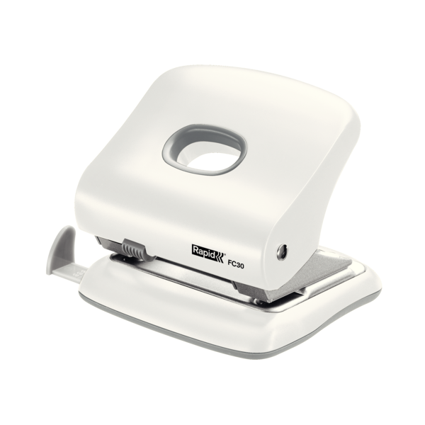 Stolní děrovačka Rapid FC30Výkonná odolná kovová děrovačka s ramenem a základnou z vyztuženého plastu ABS. Vhodná pro použití doma, ve škole i v kanceláři.