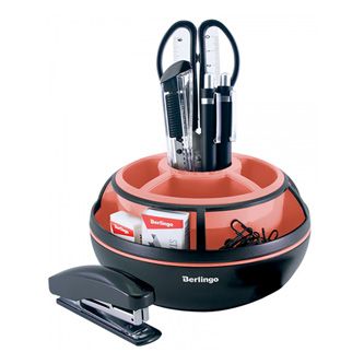 Stylový stolní organizér Berlingo Instinct v elegantní černo/červené barvě je ideálním řešením pro udržení pořádku na vašem pracovním stole. Pomáhá efektivně roztřídit psací potřeby, kancelářské sponky, nůžky, pravítka a další drobnosti.Díky pevnému a odolnému materiálu nabízí dlouhou životnost a stabilitu. Moderní design v kombinaci s praktickým uspořádáním přihrádek dodá vaší kanceláři nebo studijnímu prostoru svěží vzhled.