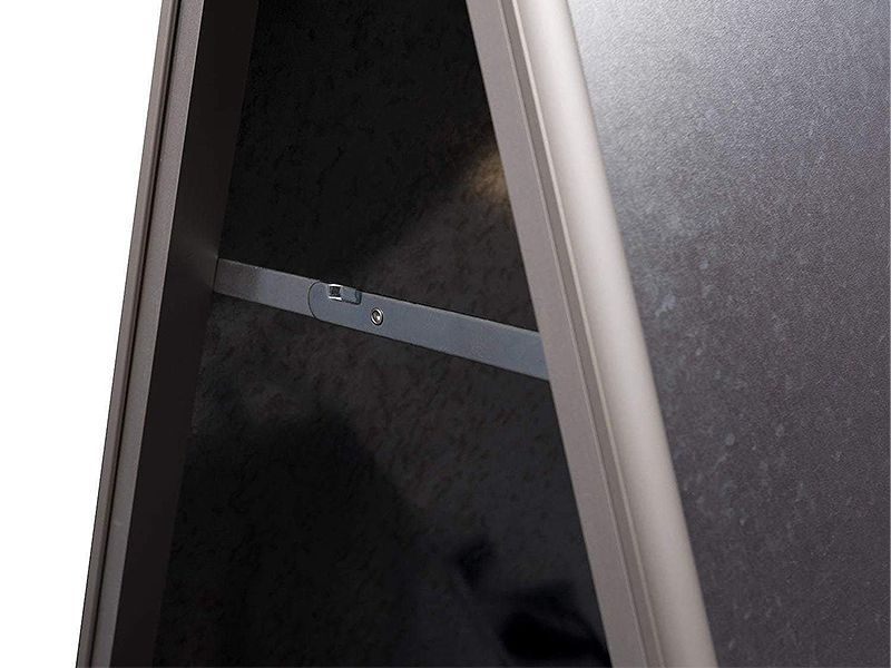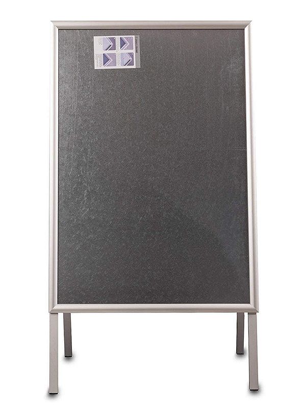 Tento produkt je výjimečně pevný a odolný systém, vyrobený výhradně z kovu. Jeho zadní strana je vyrobena z pozinkovaného ocelového plechu. Díky tomu lze cedulku používat venku, ale za omezených větrných podmínek. Systém zaklapávacího rámu umožňuje umístit plakát dovnitř. To trvá jen několik sekund. Silný plakátový obal je vybaven UV filtrem, který chrání výtisk před slunečním zářením a vyblednutím barev. Zaklapávací rám cedulky je vyroben z 25 mm eloxovaného hliníkového profilu.Rozměr plakátové plochy: A1 (594x841 mm)Výška postaveného produktu: 106 cmSpecifikace:
