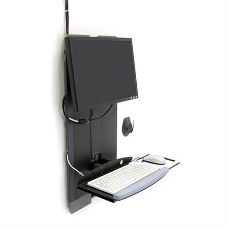 ERGOTRON StyleView® Vertical Lift, High Traffic Area (black), systém držáků na zeď, monitor,klávesnice,myš, low profilePerfect for space-constrained and high-traffic areas. The low profile vertical lift provides 9" (23 cm) of smooth vertical adjustment and folds into a slim, compact unit when not in use—less than 4" (10.2 cm) from the wall.