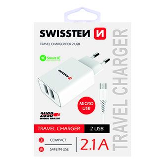 SWISSTEN Síťový adaptér, s microUSB kabelem, 100-240V, 5V, 2100mA, nabíjení mobilních tel