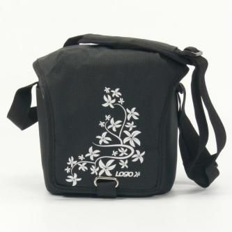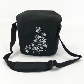 Taška na kameru, polyester, černá, Flower, suchý zip, 17 x 18 x 10 s popruhem přes rameno,