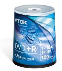 TDK DVD+R, t19504, 100-pack, 4.7GB, 16x, 12cm, General, Standard, cake box, bez možnosti p
