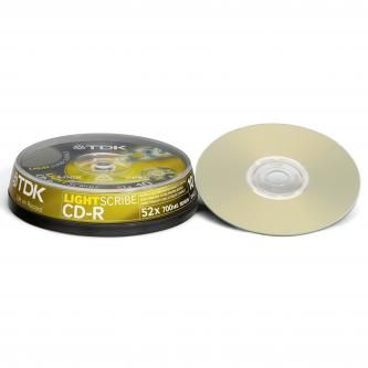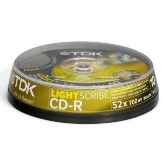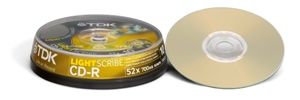 TDK LightScribe, 700 80min., CD-R, 12cm, LightScribe, cake box, Standard, 52x, 10-pack, pr