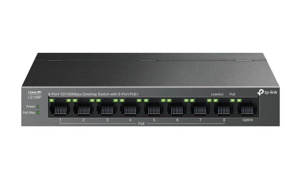 TP-Link LiteWave switch LS109P (9x100Mb/s, 8xPoE+, 63W, fanless)