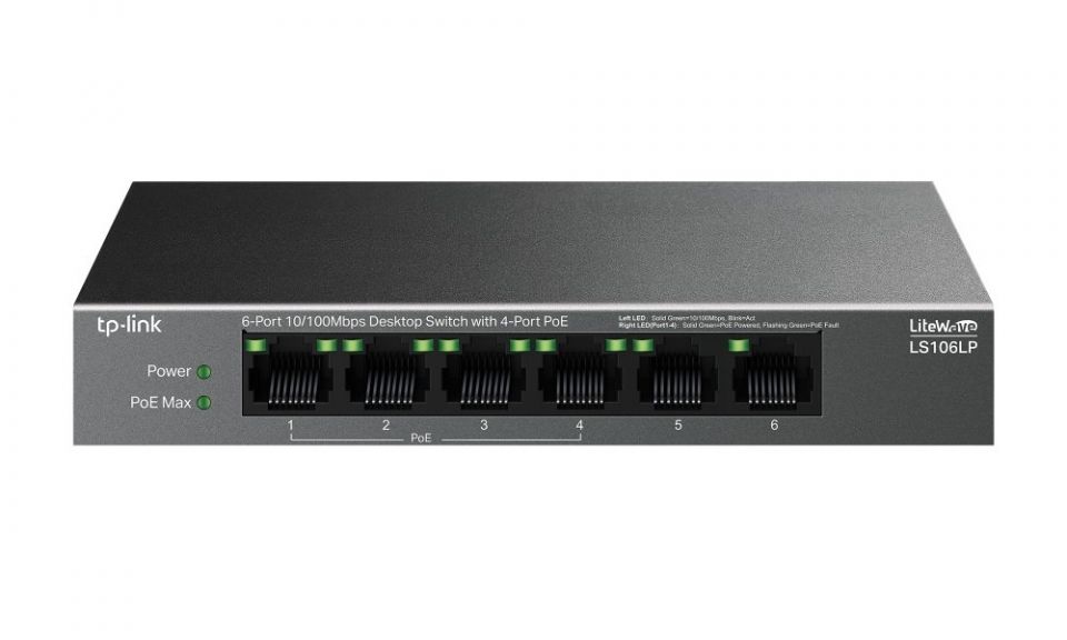 TP-Link switch LS106LP6-Portový 10/100Mb/s stolní switch s 4 porty PoE