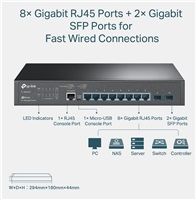 Plně gigabitové porty -8 gigabitových portů RJ45 a 2 porty SFP poskytují vysokorychlostní připojení.