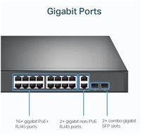 16× Gigabit PoE+ RJ45 ports, 2× Gigabit on-PoE RJ45 ports, and 2× Combo Gigabit SFP slots