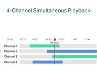 4-kanálové simultánní přehrávání - Přehrávejte záznam až ze 4 kamer současně, zvyšte rychlost přehrávání a vyhledejte události v plánu videa, abyste si mohli snadno prohlédnout záznam.