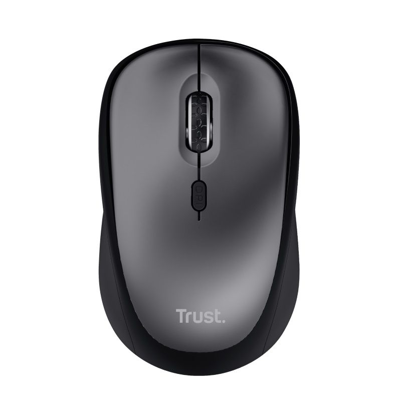 TRUST Yvi+ Tichá bezdrátová myš černáKompaktní bezdrátová myš s tichými tlačítky; vyrobena z 83 % z recyklovaných materiálů