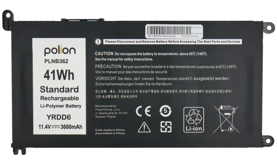 TRX Baterie Polion YRDD6 pro notebooky DELL Vostro 3400 5488 5585 Inspiron 5490 - 3600mAh 972 Kč