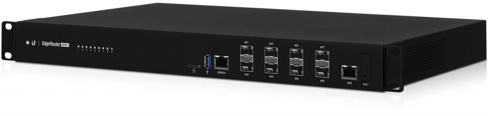 EdgeRouter Infinity se řadí svým výkonem a rozhraními do core řešení pro poskytovatele internetu, podnikových sítí a obsahuje celkově 8x SFP+ port pro připojení 10Gbps linek a jeden Gigabit Ethernet.