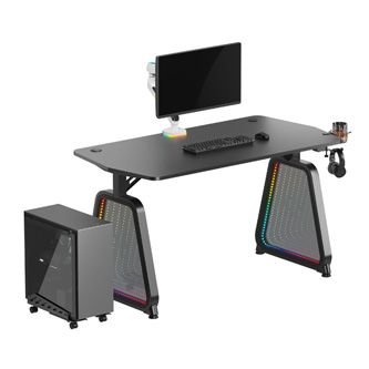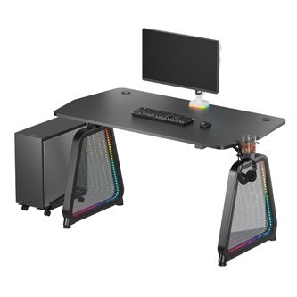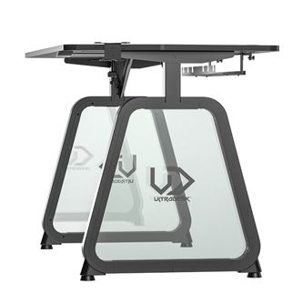 Futuristický stůl s jedinečnou konstrukcí bočních podpěr účinně a rovnoměrně přenáší hmotnost zařízení na podlahu, ale zároveň nechává prostor pro nejlepší část tohoto stolu - působivé panely s osvětlením RGB PRISMATIC LED. Pro podpěry byl zvolen speciální tvar lichoběžníku, který připomíná motory vesmírné rakety a byl doplněn o průhledné panely s logem ULTRADESK. LED diody byly instalovány na okrajích panelů a vloženy dovnitř - díky tomuto se na povrchu panelů rozptyluje vícebarevné světlo a vytváří jedinečný zážitek při cestách za dobrodružstvím.