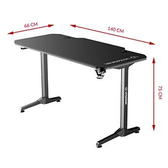 ULTRADESK Herní stůl FRAG - BLACK, 140x66 cm, 76 cm, s XXL podložkou pod myš, s ultradesk