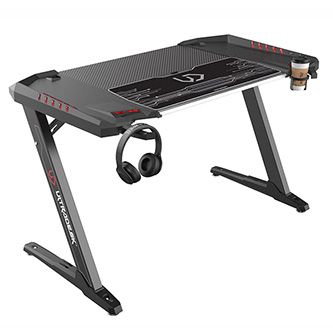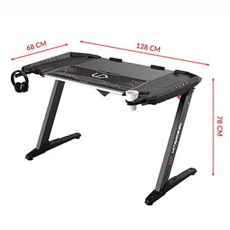 ULTRADESK Herní stůl ROCKET BLACK, 128x68 cm, 78 cm, s XL podložkou pod myš, držák sluchá