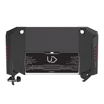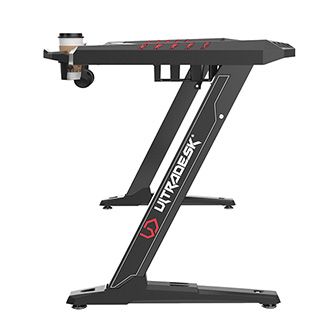 Ultradesk ROCKET nabízí nejfunkčnější desku stolu ze všech designů. Je vyroben ze 4 různých materiálů. Boky jsou vyrobeny z ultra tvrdého plastu, aby byla pracovní plocha ještě odolnější. Střed tvoří hustá dřevovláknitá deska, která byla navíc pokryta ochrannou vrstvou uhlíku. Na přední hraně byla deska stolu nakloněna a doplněna další ochrannou vrstvou z hliníku.
