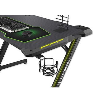 Velká plocha nabízí prostor pro mnoho typů hardwaru. Velikost plochy však není jedinou výhodou, která zajišťuje vysoký komfort a velkou svobodu pohybu. Herní stoly také poskytují skupinu užitečných rozšíření. Takovým prvkem je například podložka XL, na kterou se vejde jak myš, tak i klávesnice. Další důležitou funkci plní držák nápojů umístěný na pravé straně stolu. Každý hráč, který už vylil nějakou tekutinu na svou drahocennou klávesnici a poškodil ji, si bude užívat bezpečnostního faktoru poskytovaného touto částí stolu. Na levé straně ULTRADESK Space najdete pohodlný háček na sluchátka. Velmi užitečná funkce, pokud chcete mít rychlý přístup ke svým sluchátkům. Skvělým doplňkem je herní stojan na hry pro gamepady, softwarové boxy nebo jiné malé přístroje.