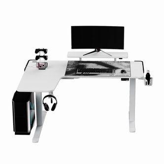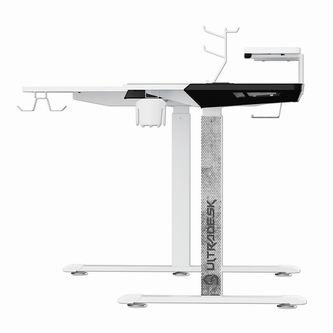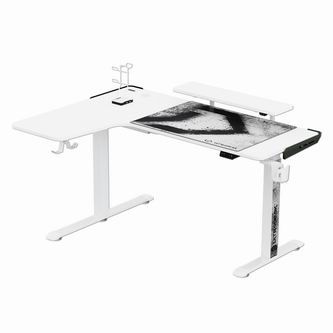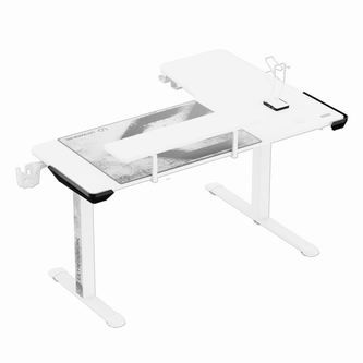 ULTRADESK Herní stůl WINGER - bílý, 111x155x60 cm, 75-122 cm, elektricky nastavitelná výšk