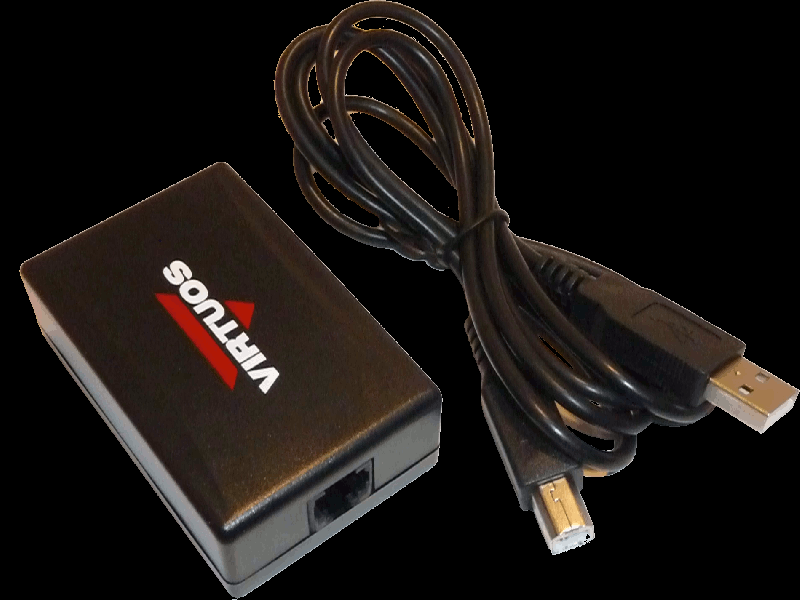 USB adaptér pro připojení pokladních zásuvek k POS systémům, který nevyžaduje další externí napájení. Umožňuje zásuvku nejen otvírat, ale i zjišťovat její stav. Nově, díky použité čipové sadě Profilic, není v nových verzích OS Windows třeba dodávat ovladač. Dále navíc podporuje vedle Windows i Linux a operační systém tabletů Android 4.2 a vyšší.Pro připojení zásuvek Virtuos je třeba použít kabel RJ12 24V (EPP12031A), který je u zásuvek Virtuos dodáván jako jejich součást, případně lze kabel zakoupit samostatně.