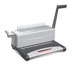 Jednoduchý dvoupákový vázací stroj na vazbu plastového hřebene, vhodný pro kanceláře a menší provozy.Nastavitelný okraj.