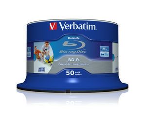 VERBATIM BD-R SL Hard Coat protective layer Wide Inkjet Printable 25GB Spindle 43812