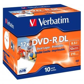 Verbatim DVD-R, 43699, Dual Layer, 8.5GB, 12cm, General, Standard, Inkjet Printable, jewel