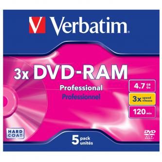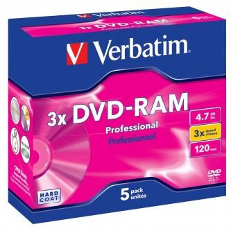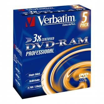 Verbatim DVD-RAM, 43491, DataLife PLUS, 5-pack, 4.7GB, 2-4x, 12cm, General, Hardcoated, je