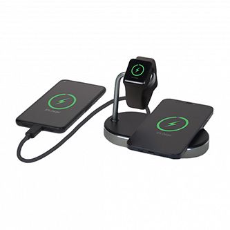 3 v 1: Můžete bezdrátově nabíjet hodinky Apple Watch a dva telefony iPhone (8 nebo novější) nebo jiné zařízení s bezdrátovým nabíjením s certifikací QiAž tři zařízení současně