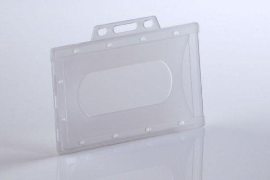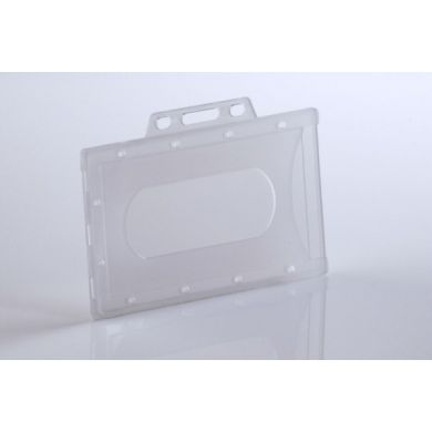 Tuhá plastová visačka pro kreditní karty - vodorovn á, provedení z průhledného polomatného plastu. Jedna strana s oválným otvorem pro snadné vsunutí karty. Výhodou visačky je poměrně velký výsek 24x57 mm pro snadné čtení kódu, má zaoblené hrany. Možno zavěsit na klips se šlí (v našem sortimentu klips Americký, nebo klips Evropský), šňůrku nebo naviják. Úchyt s výsekem pro zavěšení 15x3 mm není součástí visačky, ale vystupuje. Vnější velikost: výška 60 mm x šířka 93 mm x hloubka 3 mm.Specifikace: