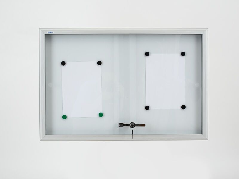 Uzamykatelná magnetická vitrína AVELI slouží k vystavení aktuálních informací bez rizika ztráty. Dvířka vitríny jsou z odolného polykarbonátu. Povrch vitríny je magnetický a je možné na něj psát popisovači na tabule či flipcharty. Vitrína je přizpůsobena pouze do vnitřních prostorů. Díky bezpečnostnímu zámku budete mít vždy jistotu, že nedojde k poškození či ztrátě důležitých informací.