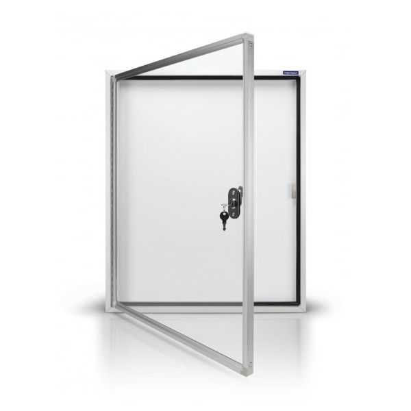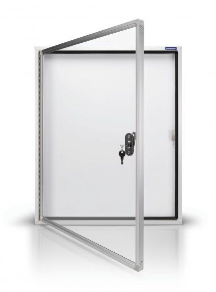 Vitrína Magnetoplan pro venkovní prostory. Vnitřní čelní stěna bílá magnetická, popisovatelná - velikostně optimální pro umístění 4 x A4 formátu. - prosklená dvířka - bezpečnostní sklo - zámek s dvěma klíči - zadní stěna kovová pozinkovaná - po obvodu elegantní hliníkový profil s gumovým těsněním na obvodu dvířek - dodáváno s montážním materiálem Rozměry : Venkovní (š x v x h): 650 x 790 x 65 mm Vnitřní bílá plocha (š x v): 540 x 680 mm Vniřní/celková hloubka: 20/65 mmSpecifikace: