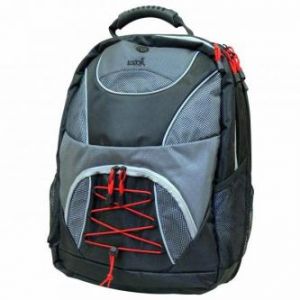Vyztužený batoh na notebook, 15,6", SPORTY, s červenou šňůrkou, šedo-černý z nylonu, Logo